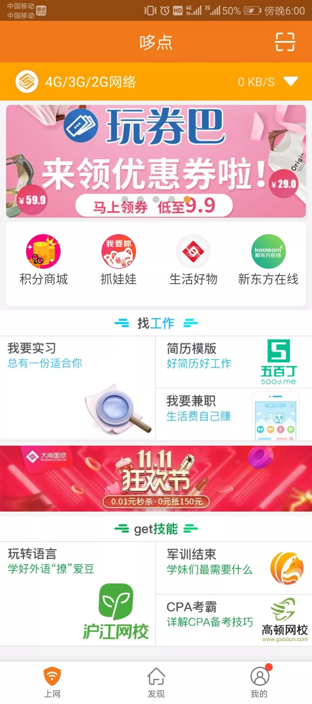 APP哆点除连接无线网络的功能外,几乎通篇广告,其首页就包含培训机构、购物、抓娃娃等共计15个广告。